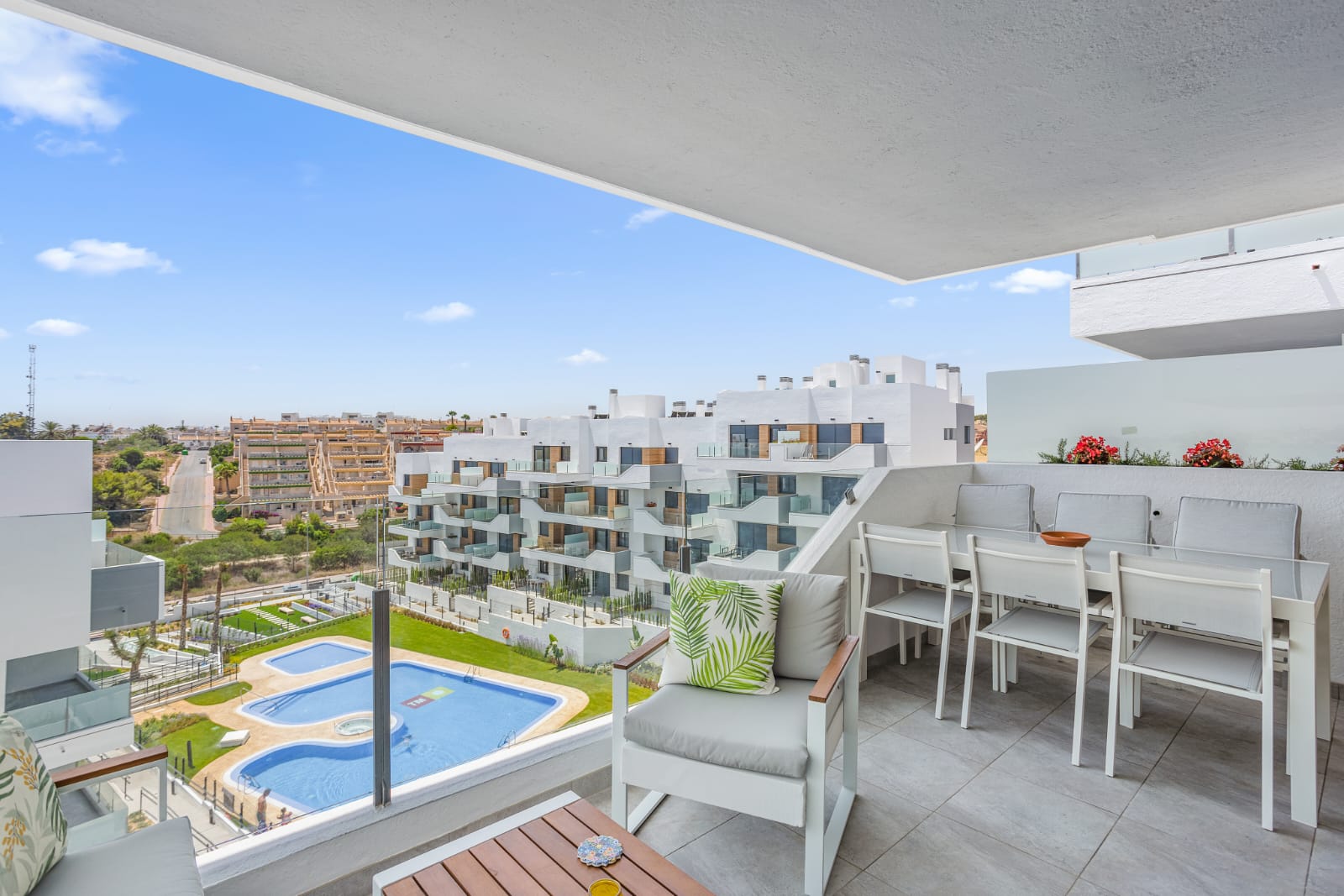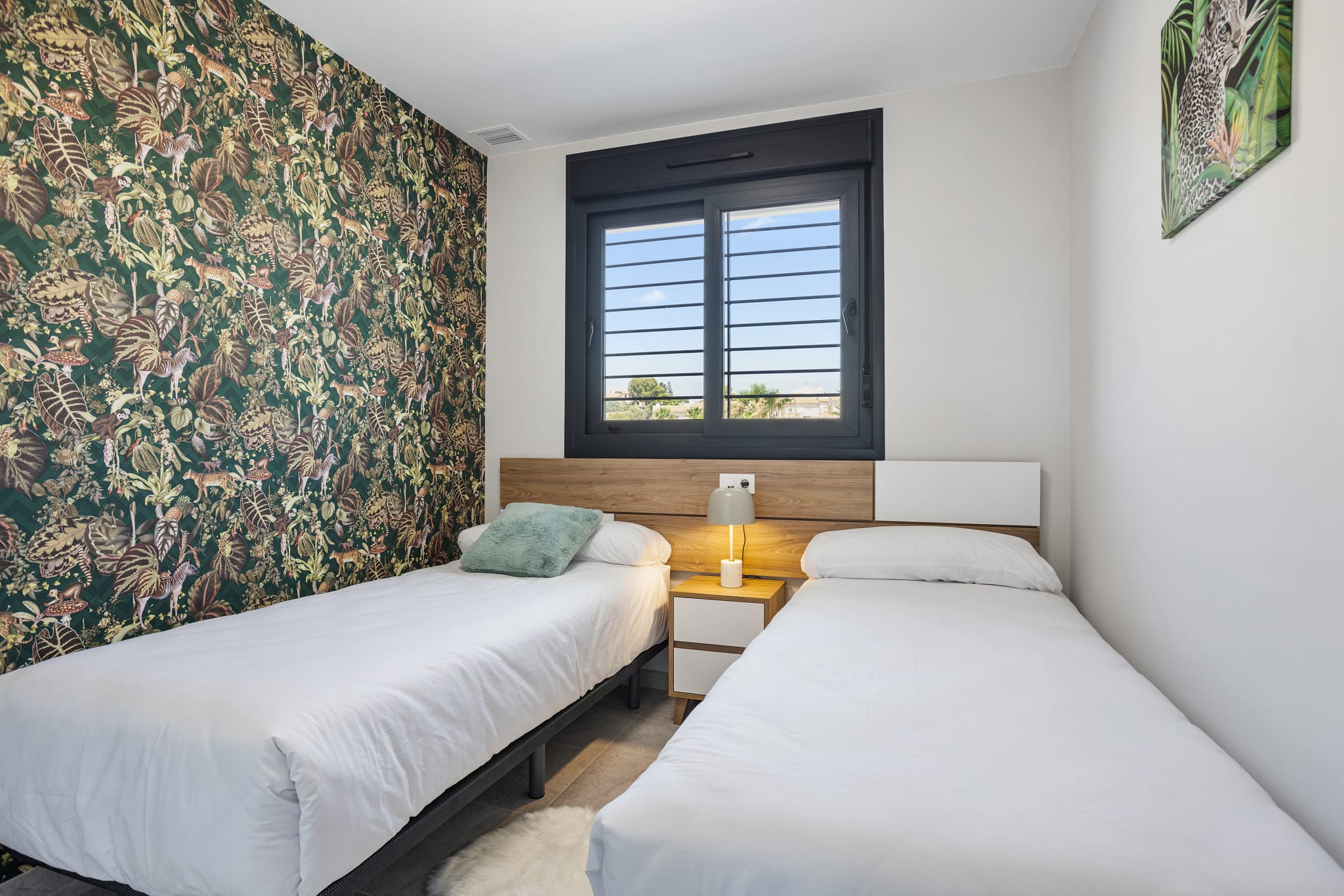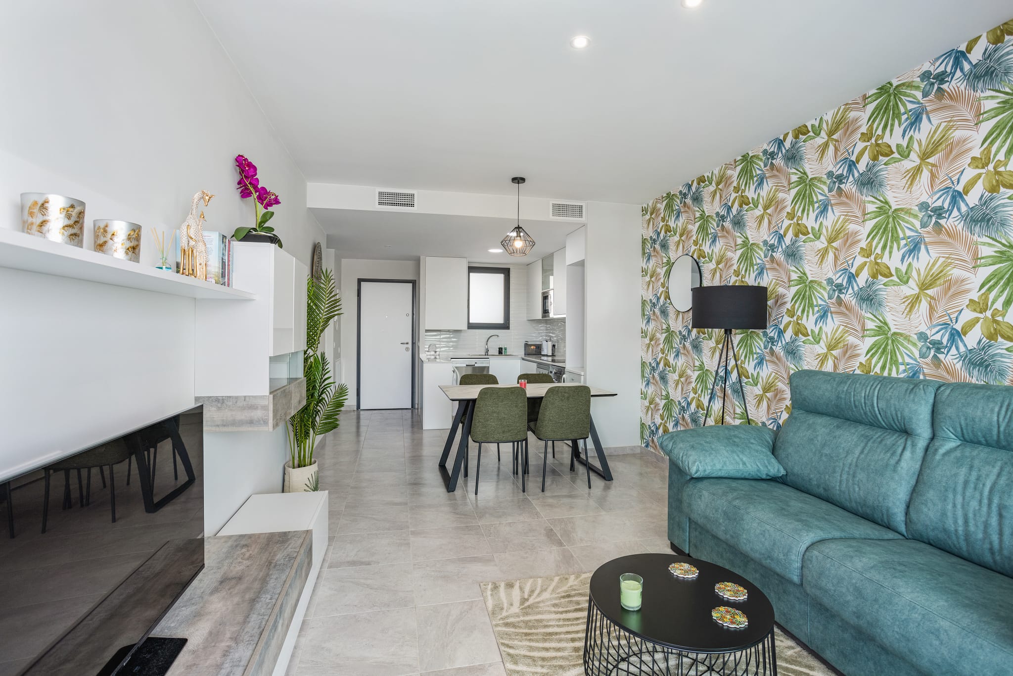 Het appartement is volledig uitgerust voor een zorgeloos verblijf. Met airconditioning voor verkoeling op warme dagen, twee comfortabele slaapkamers, een volledig ingerichte keuken en een moderne badkamer voelt u zich hier direct thuis. De gezellige woonkamer is voorzien van een tv, perfect voor een ontspannen avond na een dag vol zon, zee en Spaanse charme.